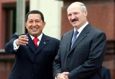 Venezuela’s Hugo Chavez, on one of his periodic “I ♥ Dictators” tours, has turned up in Belarus to be welcomed by President Alexander Lukashenko.