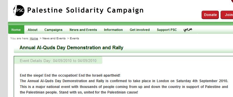 So did the extremists of the “Palestine Solidarity Campaign” (whose patrons include Labour MPs John Austin and Jeremy Corbyn):