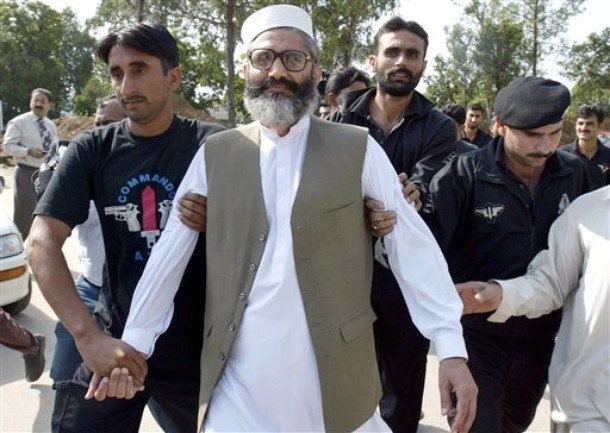 This is Siraj ul-Haq, a leader of the Islamist party Jamaat-e-Islami, detained by police at a demonstration against Musharraf in Islamabad.