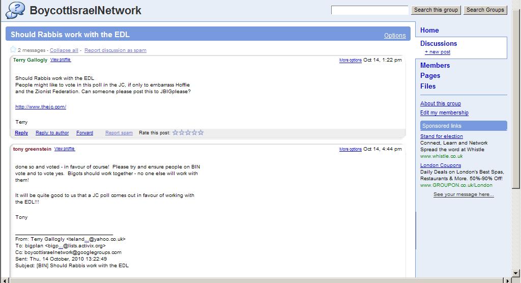 So, in a nutshell, Tony Greenstein is suggesting that anti-Zionists should try to rig a JC poll, so that they can falsely paint Jews as racists. This, despite the fact that the JC makes it very clear that there is consensus amongst Jewish organisations, and the JC, that the EDL must be opposed.