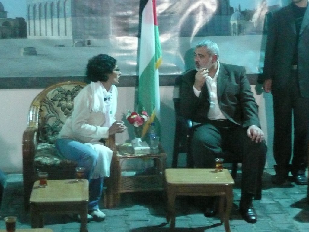 “Peace activist” Lubna Masarwa is no stranger to Hamas. Here she is with Ismail Haniyeh on another Gaza escapade.