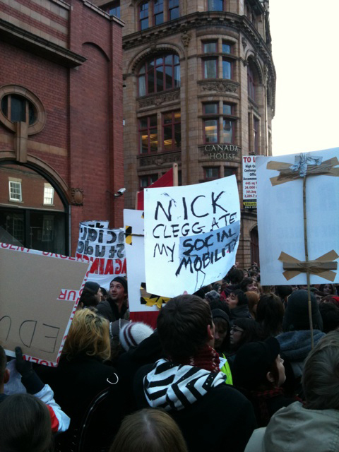 It’s almost entirely peaceful well organised demonstrating, but already 56 have been arrested in London where the police are not getting caught with the pants down again. There are some great tweets being sent on Twitter today under the hashtag #demo2010. There is also alive stream of demo pics here. Really interesting to see how students are turning to social media and using it so well. It is proving a boon both as tool to organise and share information helping to link up local actions taking place today.