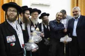 Kevin Ovenden with his hero Ismail Haniyeh of Hamas and Neturei Karta idiots in tow.