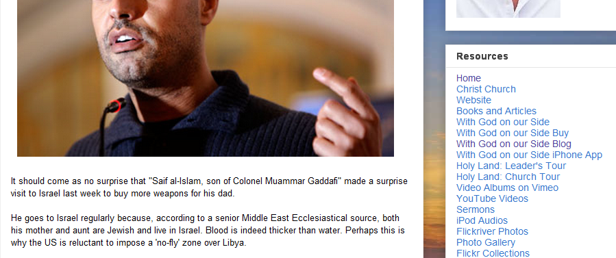Stephen Sizer reproduces an internet rumour about Colonel Gaddafi’s son Saif visiting Israel suddenly, in order to purchase weapons for his dad’s war on the Libyan people.