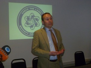 Being on the front bench is no obstacle to helping extremists. Here is a picture of him speaking at a “boycott Israeli dates” meeting earlier this week. It is part of a long-running campaign of the Friends of Al Aqsa group, the fanatical Israel bashers led by Hamas supporter and antisemite Ismail Patel.