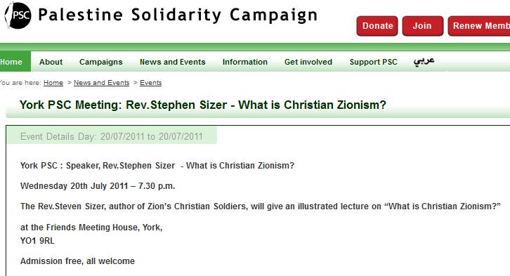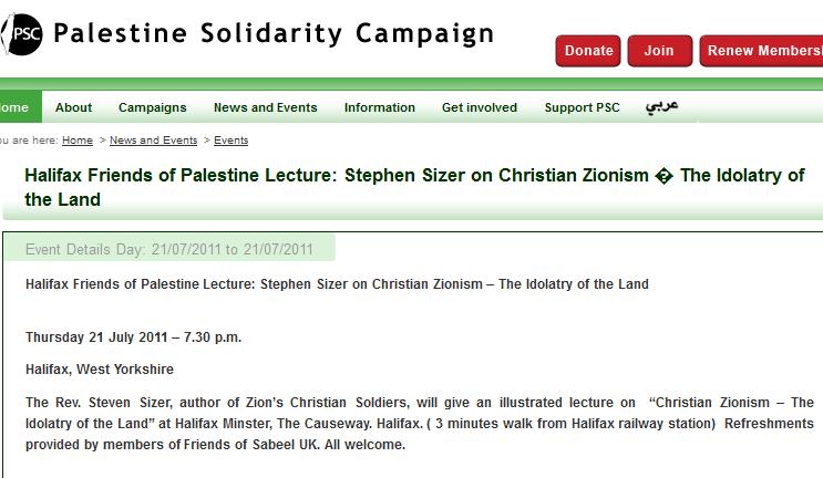 The PSC likes him too. It is advertising two of his speaking events – a talk at Friends Meeting House in York on 20 July and another at Halifax Minster on 21 July. (Click to enlarge the images.)