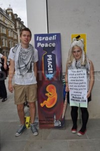Note in the poster, the bomb with a Jewish (not Israeli) star of David, falling on a foetus.