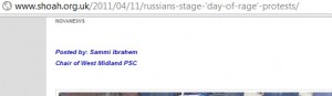 He attended the branch forum of the PSC last year in Oxford, representing the West Midlands. He also runs a website called Shoah.org.uk. The Jewish Chronicle reported last year: