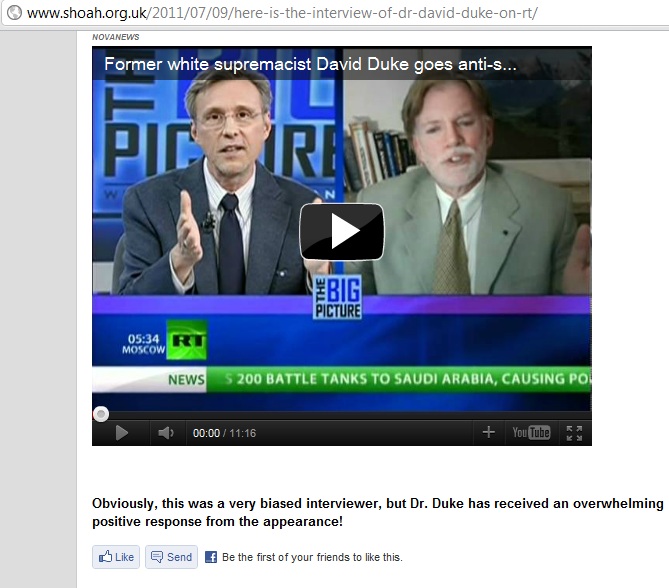 Ibrahem posts an interview with David Duke on Russia Today, with the comment: