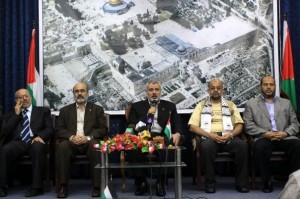 Here, for example, is Interpal vice chairman and trustee Essam Mustafa (second from right). He is also known as Essam Yusuf. He is with Hamas leaders (from the left) Ahmed Al-Kurd, Ziad Al-Zaza, Ismail Haniyeh, and Khalil Al-Hayya.