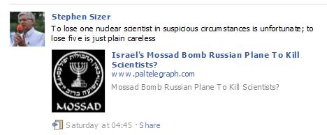 This is no first. For example, Sizer suggested people read the output of the hate publishers of the Palestine Telegraph just this summer.