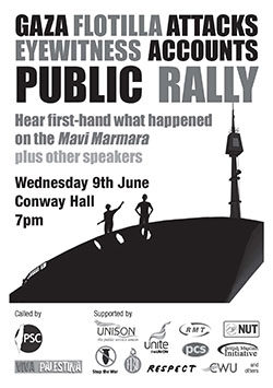 Here’s Laura Stuart, a flotilla activist talking to a London meeting of the Palestine Solidarity Campaign, June 9 2010: