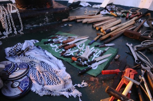 Items truly for humanitarian aid get through to citizens already. It is only those deemed as “dual-use” — things like steel pipes, fertilizer and cement — that are blocked. Some of the items on last year’s flotilla included ballistic vests, gas masks, night-vision goggles and clubs. You can expect more of the same this time.