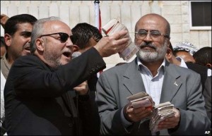 As for his claim for fighting for Muslims ‘at home and abroad’, Galloway has been on the wrong side time and time again. His slavish love affair with the genocidal terrorist group Hamas, means Palestinians in the Gaza can wave goodbye to free and fair elections ever again, as well as a lethal price to pay if you don’t conform to the Islamist group’s virtues. Here’s a picture of Galloway giving money over to Hamas’ Ziad Zaza. Suffice to say, the Palestinians could not wish for a worse friend than Galloway.