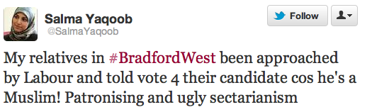 Update: To add to the hilarity. Have a look at what fellow religious-race baiter Salma Yaqoob has to say: