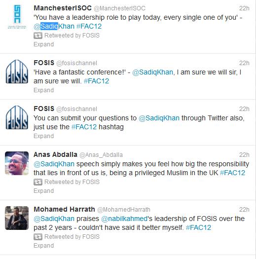 Labour in the shape of Sadiq Khan MP, Shadow Lord Chancellor and Shadow Secretary of State for Justice, has a very different view than the government. Khan opened this weekend’s FOSIS conference, hailing the FOSIS leader and liar Nabil Ahmed.