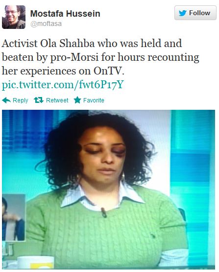 And here is what happened to anti-Morsi activist Ola Shahba while being held by Muslim Brotherhood thugs: