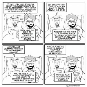 The question before us is very simple: do we have the right to depict Mohammed? It’s a simple question and so it deserves a simple answer. The answer is either yes or no. My answer is yes. If your answer is “yes, but”, then sorry that’s just not good enough. If you have to pause for thought before answering the question then you’ve probably already decided the answer is no.