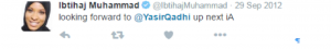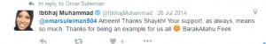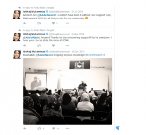 Muhammad has called Jangda an ‘awesome speaker’ and has praised him on Twitter, engaged in numerous friendly chats with him, and tweeted out her attendance to his talks. Among her interactions with him include ‘May Allah reward YOU for all that you do for our community’, ‘Thanks for the unwavering support!!! You’re awesome’ or tweeting out ‘Yay! Inshallah I’ll be there’ at news he was coming to do a speech in New York.