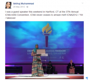 This year will not be the first time Muhammad has either attended or spoken at the ISNA convention, she has tweeted about her attendance there for the past 5 years and was also a listed speaker there herself back in 2012.