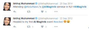Muhammad has regularly engaged warmly on Twitter with Billoo with tweets such ‘so happy to have met @ZahraBilloo who, in my head, has been a friend forever!!!’. Additionally both are also scheduled to appear as speakers at the upcoming ISNA convention in September too (as is Jamal Badawi, Tariq Ramadan, Yasir Qadhi and Abdul Nasir Janga among others).
