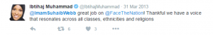 Muhammad has praised Webb on Twitter as one of her ‘favorite Imams’ and ‘a voice that resonates across all classes, ethnicities and religions’. She has regularly engaged in friendly chats with him on Twitter, tweeted about her attendance at his talks, and she herself has accepted invitations to speak alongside him on more than one occasion at events at the Ella Collins Institute (the organisation Webb founded).