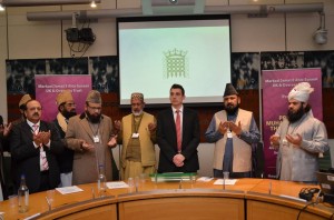 Here Mr Shuker hosts mosque leader Abdul Aziz Chishti in Parliament at an event in 2015 “held in honour and remembrance of our Beloved Prophet”.