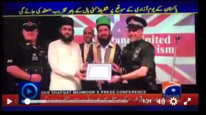 Oh dear. Now have a look at “honourable” Hassan Haseeb ur Rehman on video. Excited and agitated, he is shouting his support for Mumtaz Qadri, the man who murdered Pakistani politician Salman Taseer in 2011 for “blasphemy” and was executed by Pakistan for his crime last year. A big picture of Qadri is on the wall behind Rehman. His father is seated beneath it, watching his ranting son with approval.