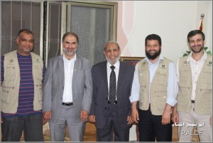 Here he is with Hamas leader Mahmoud al-Zahar (centre). To his right is Mohamed Ali Harrath, the founder of Islam Channel. Al-Zahar is known as a hardliner even within Hamas. See him here justifying centuries of Jewish persecution.