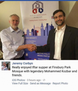 Look into Hamas UK and you will quickly find Labour too. Jeremy Corbyn is a very keen backer of Kozbar and his mosque. Why, Mr Kozbar is “legendary”!