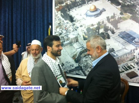On the same Gaza tour, Kozbar met Hamas leaders. Cue big smiles from the man who “abhors” violence. Here he is with Ismail Haniyeh.