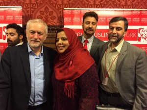Here’s Kozbar at the launch of the Labour Muslim Network last December with Corbyn and Labour MP Afzal Khan.